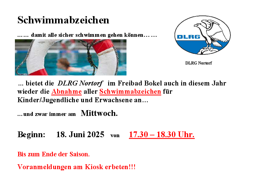 Für weitere Informationen kannst du dich über schwimmen@nortorf.dlrg.de an uns wenden.